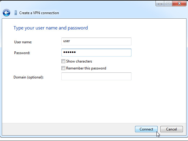 Nhập thông tin đăng nhập của bạn trên màn hình tiếp theo. Sử dụng tên người dùng và mật khẩu mà nhà cung cấp VPN đã cung cấp cho bạn.