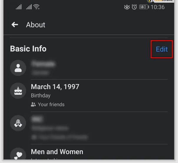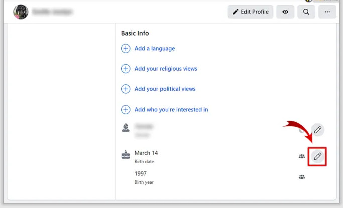 Cuộn xuống Thông tin cơ bản và nhấp vào biểu tượng bút chì bên cạnh Ngày sinh.