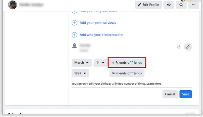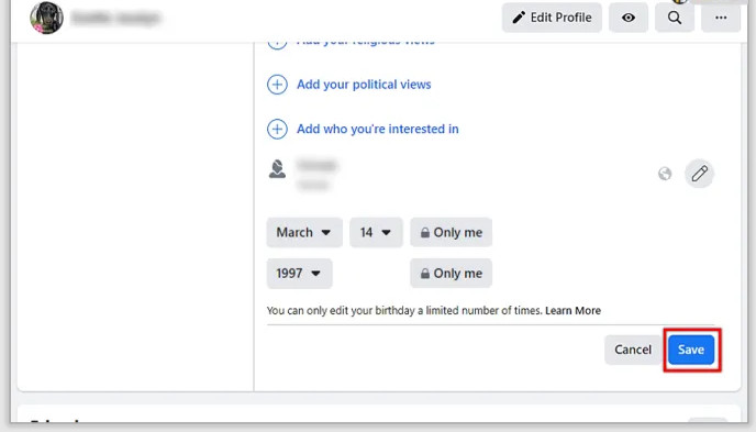 Đừng quên thay đổi cài đặt quyền riêng tư trên năm sinh của bạn. Sau khi hoàn tất, hãy nhấp vào Lưu.