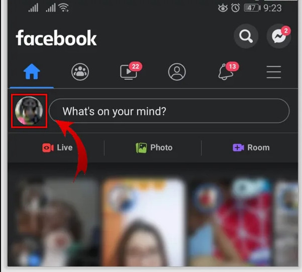 Trang đầu tiên bạn thấy là nguồn cấp tin tức của bạn. Nhấn vào ảnh hồ sơ của bạn, ở bên trái thanh tìm kiếm.