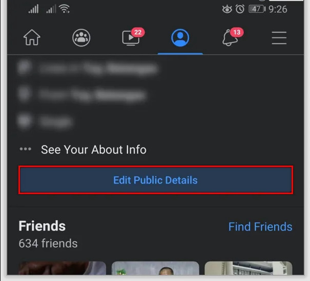 Trên trang hồ sơ của bạn, hãy nhấn vào nút có nhãn Chỉnh sửa chi tiết công khai .