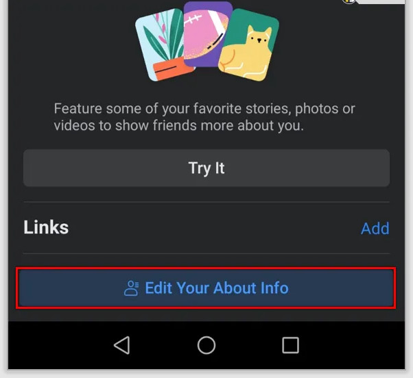 Cuộn xuống hết trang chỉnh sửa và nhấn vào Chỉnh sửa thông tin giới thiệu của bạn .