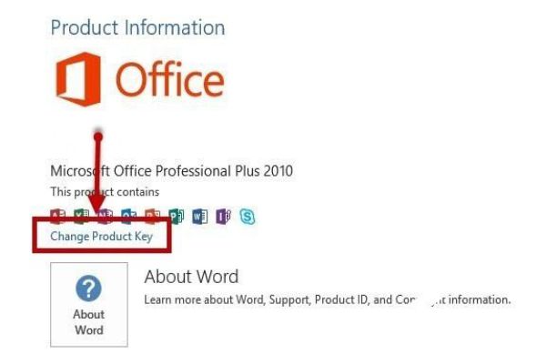 Bước 3: Các bạn chọn vào mục Change Product key. Và tiến hành nhập key office 2019 vào