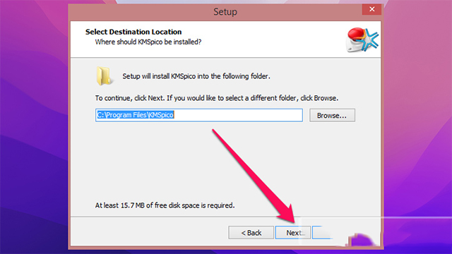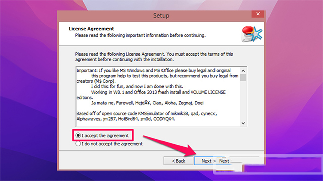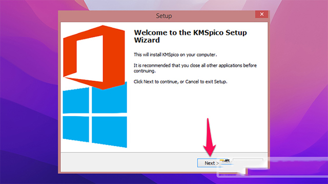 B2: cài đặt KMSpico cho máy bằng cách cho chạy file dưới quyền admin rồi chọn next