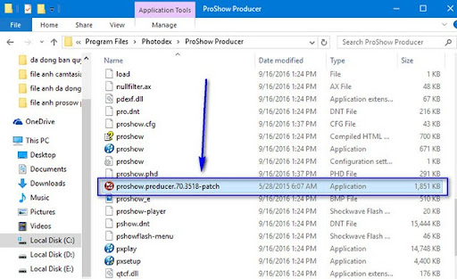 B8: Quay lại thư mục giải nén ban đầu, copy file Patch như trong hình rồi paste vào thư mục cài đặt phần mềm theo đường dẫn C:\Program Files\Photodex\ProShow Producer