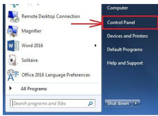 Bước 1: Truy cập vào Control Panel trên màn hình của bạn. Hoặc nếu không có thì vào Start chọn Control Panel.