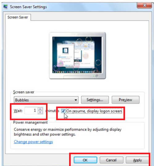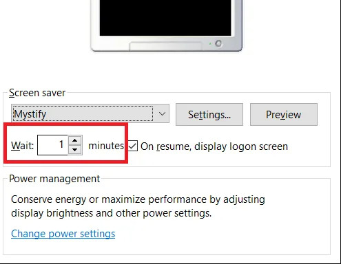 Bước 3: Trong trình Screen Saver Settings các bạn chú ý đến mục Wait. Tại đây các bạn có thể tùy chỉnh thời gian phù hợp để tính năng màn hình chờ được bật lên. Tiếp đến bạn chọn vào mục On resume, display logon screen.